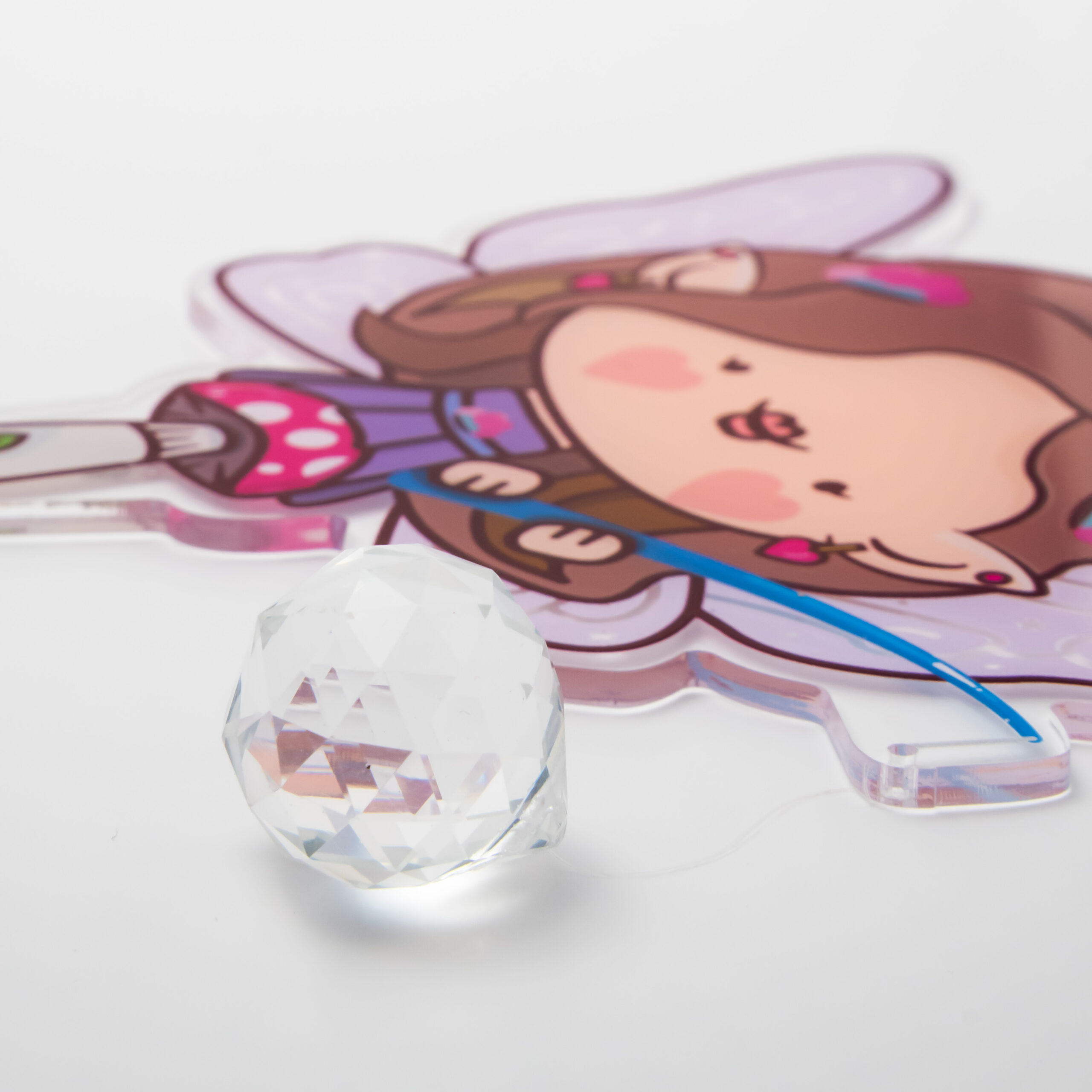Estas piezas, fabricadas con acrílico de alta calidad, destacan por su durabilidad y la vivacidad de sus colores, lo que les permite capturar y reflejar la luz de manera espectacular.